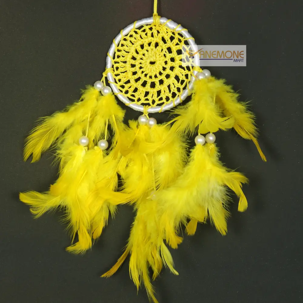 Brighten up your car with this vibrant Yellow CROSIA Car Dream Catcher, featuring striking yellow feathers. At 3 inches, it’s the ideal size to hang on your rearview mirror, adding a pop of color and positive energy.
