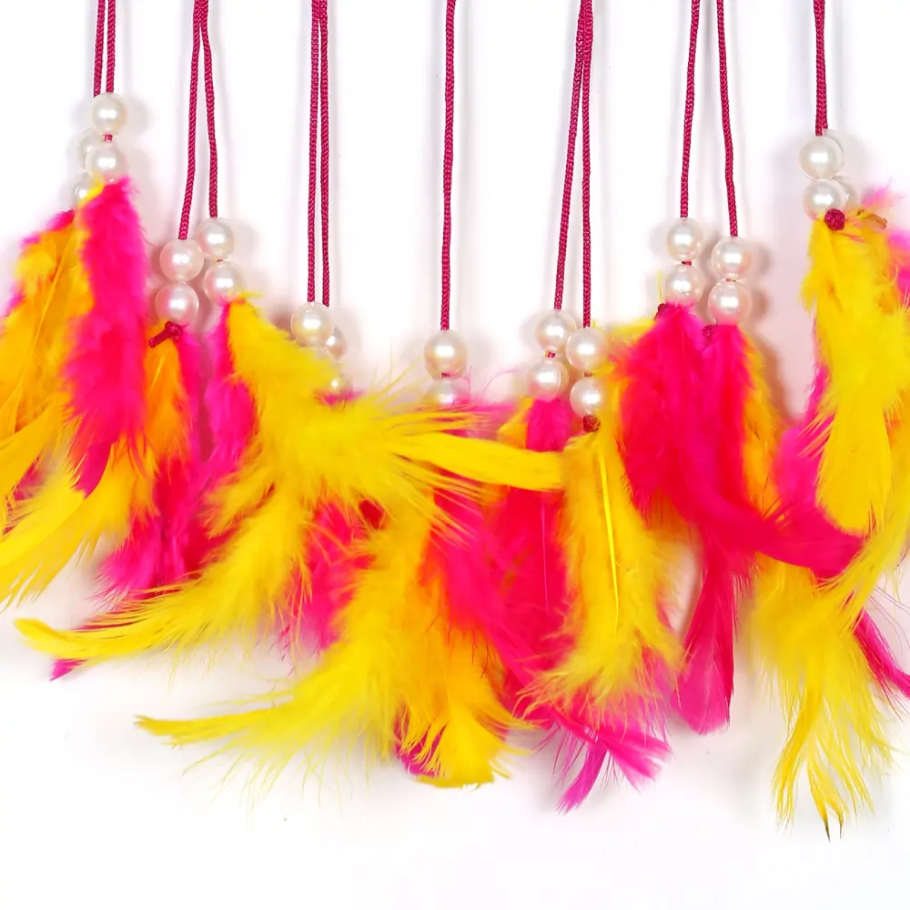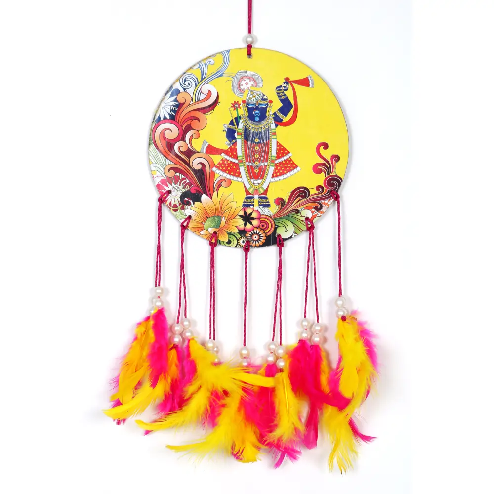 Celebrate tradition and positivity with this Ghordhan Ji Handmade Feather Dream Catcher Wall Hanging. Featuring a unique blend of spirituality and style, this dream catcher is perfect for bedrooms, balconies, gardens, or party spaces. Crafted with fine detailing and soft feathers, it brings peace, protection, and aesthetic charm to any environment. A beautiful fusion of cultural art and decorative elegance.