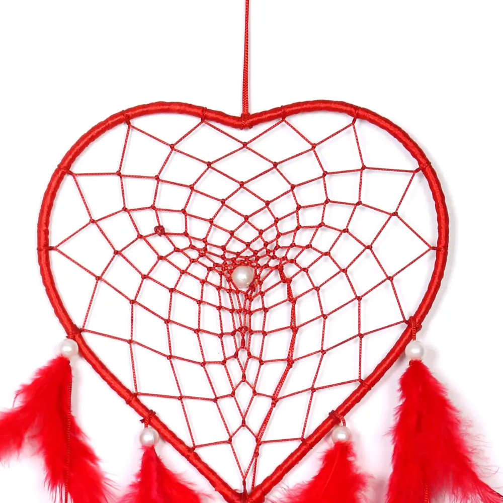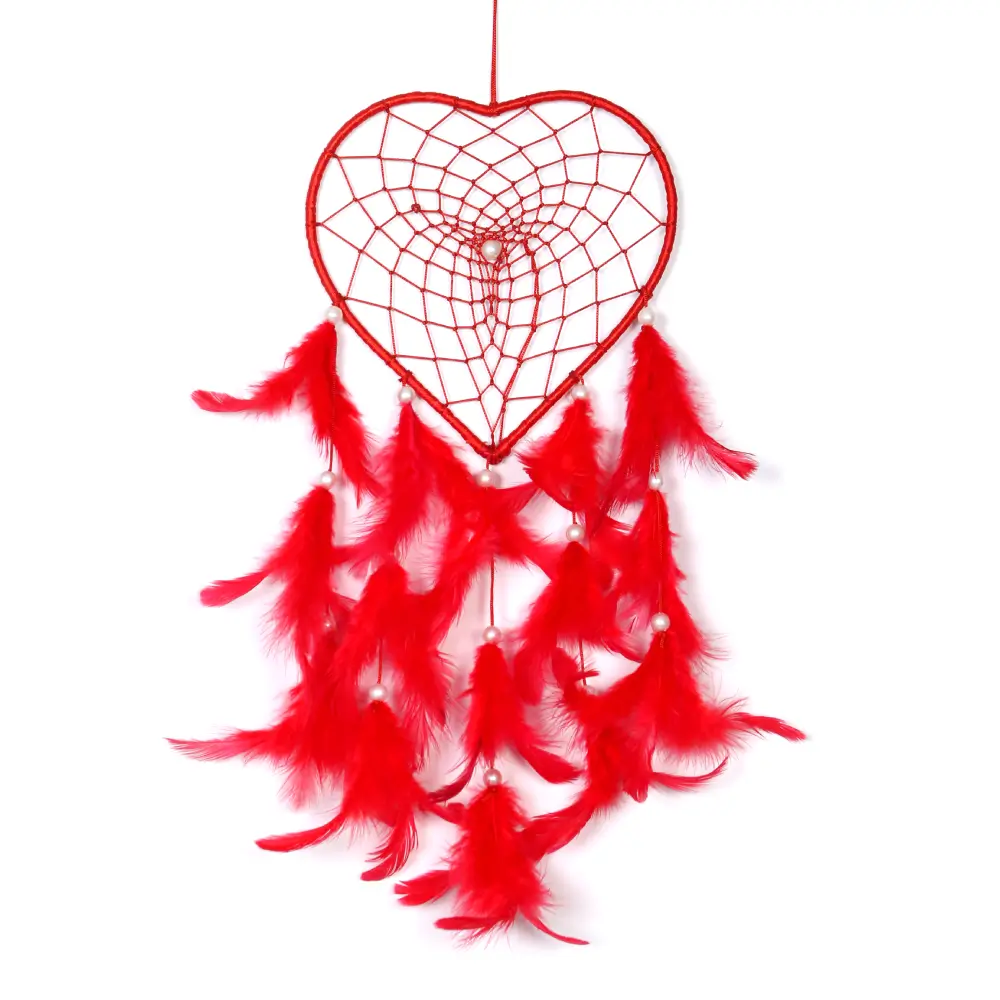 Bring warmth and style to your space with this Heart Shape Handmade Red Feather Dream Catcher. Crafted with love, this beautiful wall hanging features a heart-shaped design and soft red feathers that create a cozy, romantic vibe. Ideal for home décor, cafés, party decorations, or as a meaningful gift. It adds positivity and charm to any setting, making it a perfect pick for boho-inspired interiors.